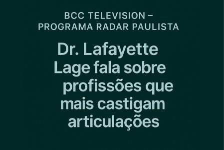Acompanhe as últimas publicações, entrevistas, podcasts e aparições do Dr. Lafayette Lage. Conteúdo científico e educativo sobre ortopedia avançada.